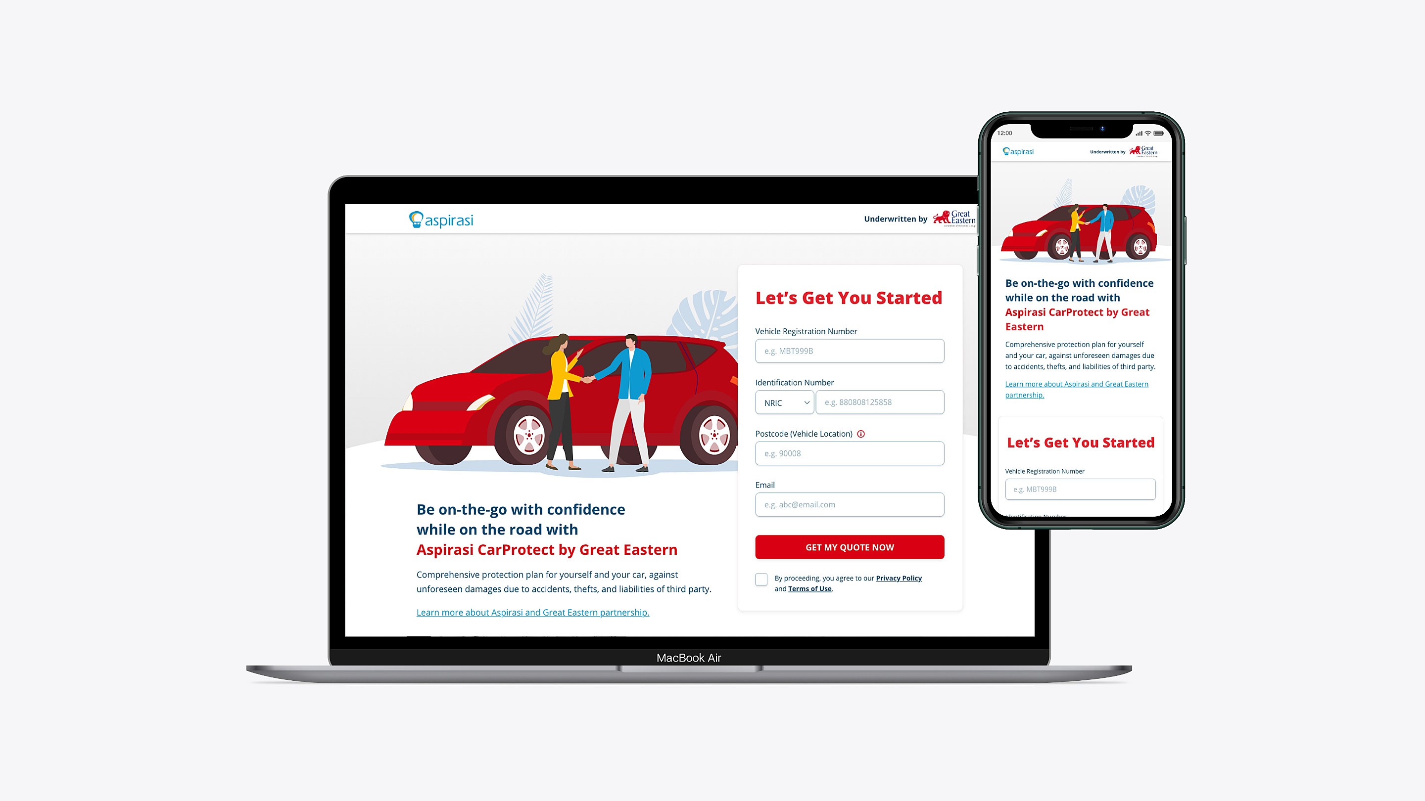 Aspirasi Axiata (now known as Boost Credit), the fintech arm of Axiata Group partnered up with Great Eastern since 2020 to provide digital insurance offerings. They launched their motor insurance product with a digital journey - CarProtect, in June 2021.